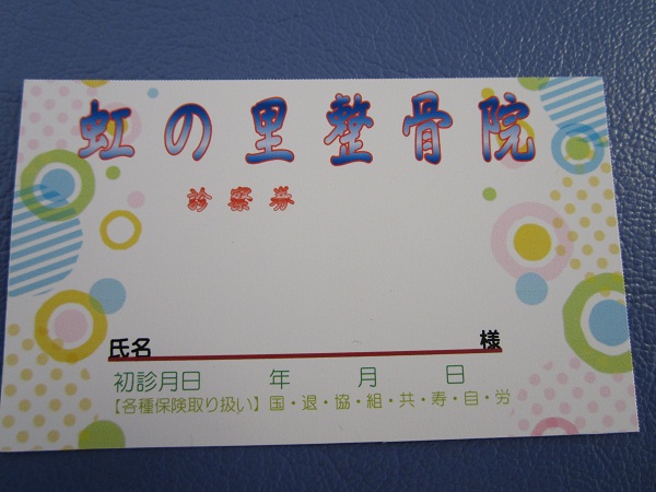 あまり、整骨院の診察券風じゃない感じで作ってみました