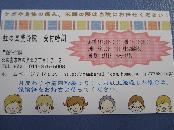 あまり、整骨院の診察券風じゃない感じで作ってみました